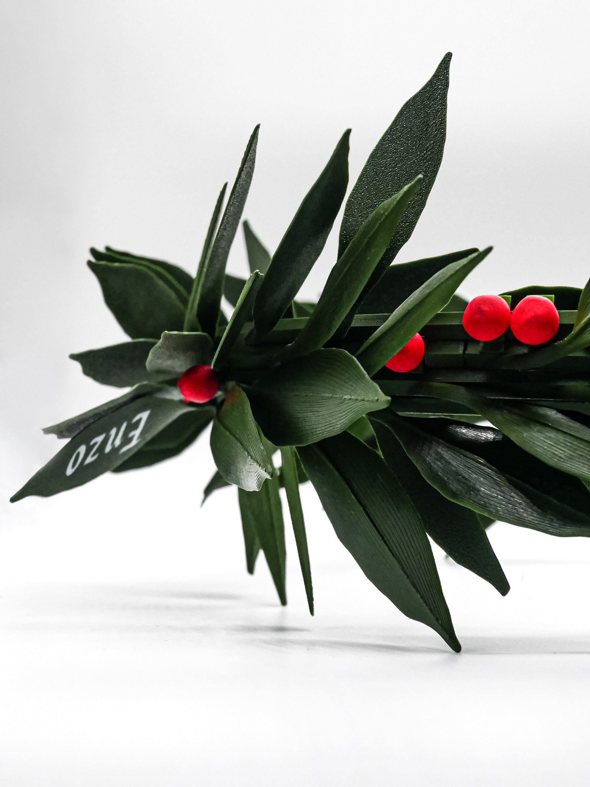 Dimentica le corone che si seccano in pochi giorni: questa è stampata in 3D e pensata per durare per sempre. Ogni corona è progettata e generata unicamente per te, con foglie e bacche realizzate su misura, così nessuna sarà mai identica a un’altra.